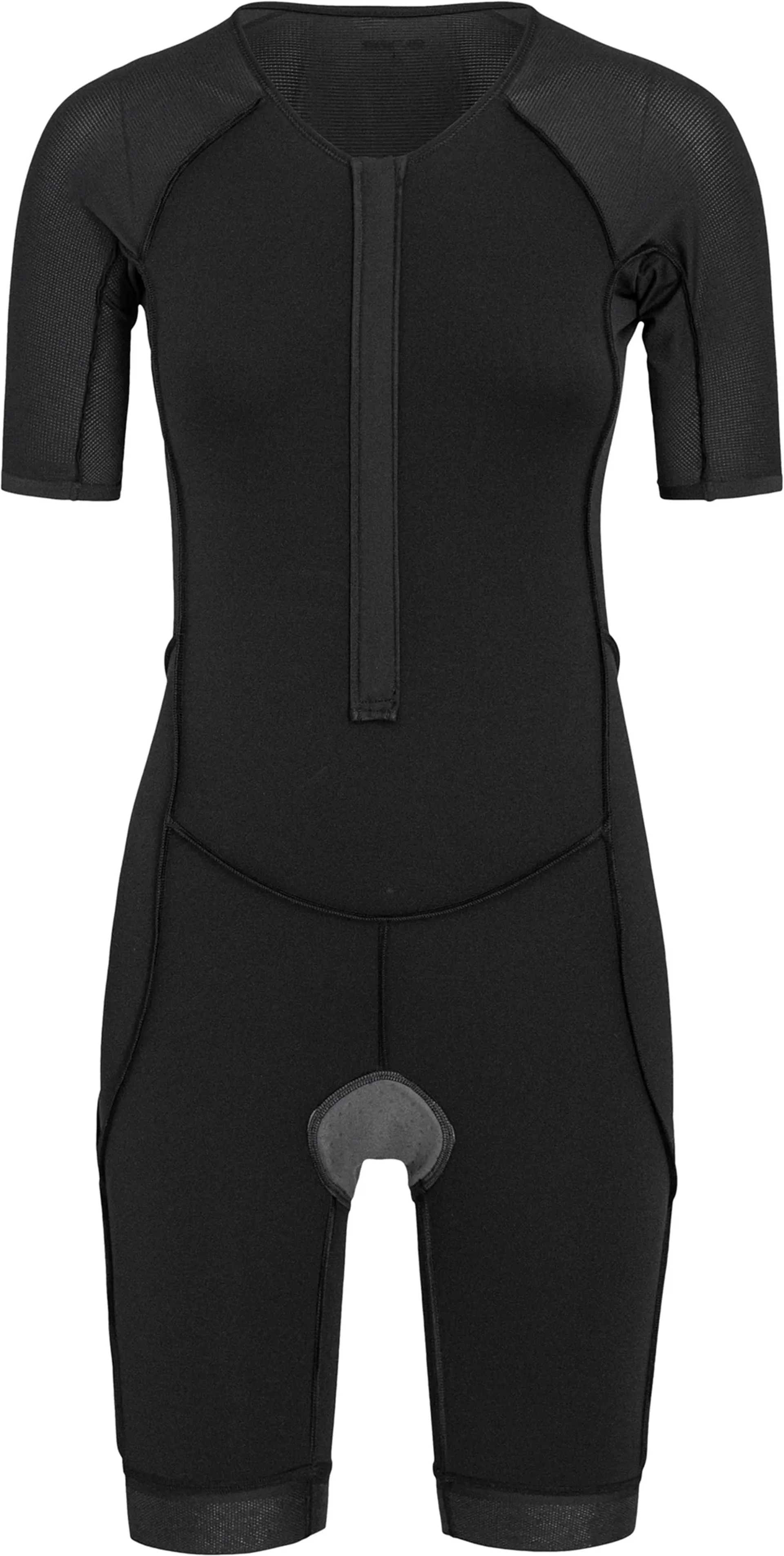 MAXIMUM ELASTICITYThe incorporation of highly elastic fabrics guarantee a perfect fit, providing good compression without reducing the suit’s flexibility.COMFORTThe Italian Tri-Tech 4mm chamois with 120 kgs/m3 density is quick drying and provides the highest level of comfort on your bike. In addition, the Vapour-cool technology based on nanocrystals helps to cool the athlete’s body, facilitating the fast evaporation of sweat. Finally, the two back pockets provide you with the necessary space to store the nutrition you need during the triathlon competition.