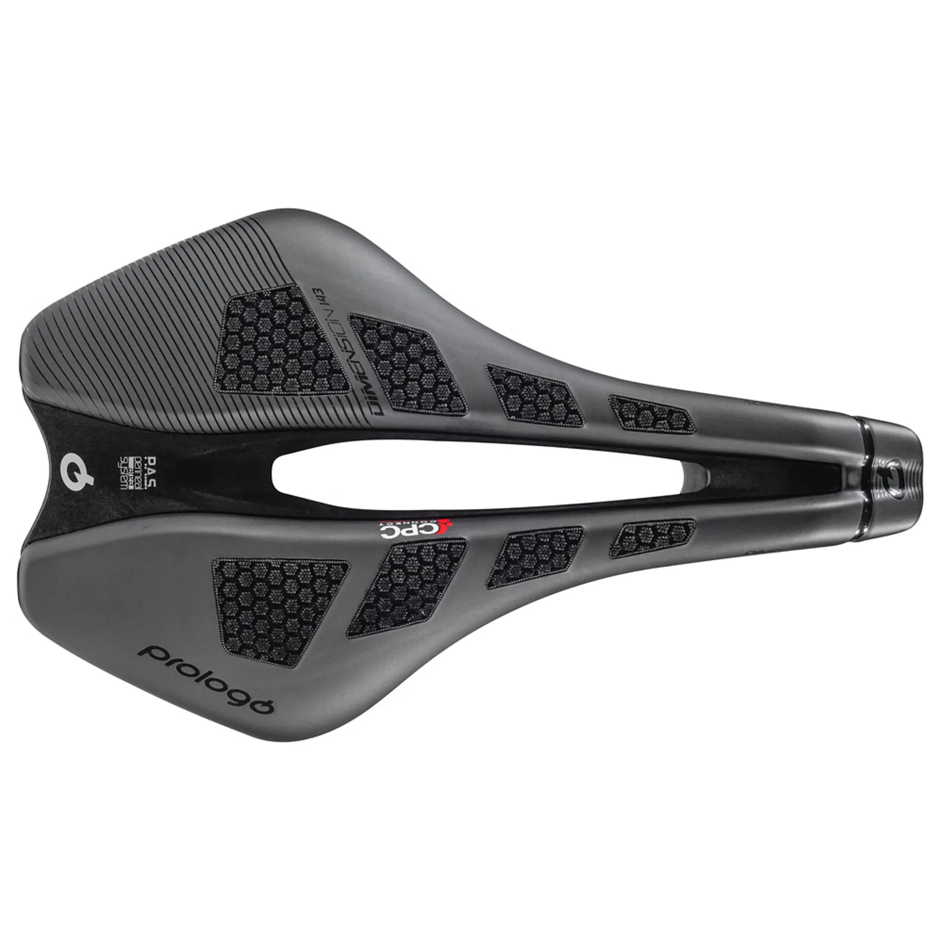 CPC: connect power control: prologo patented technology. The specially designed CPC surface features a mat of hollow cones of various heights and diameters, arranged for maximum benefits to the rider. These include optimised grip, shock absorption and air cooling. It also enhances blood flow through a massaging action, reducing numbness and tendon related discomfort.